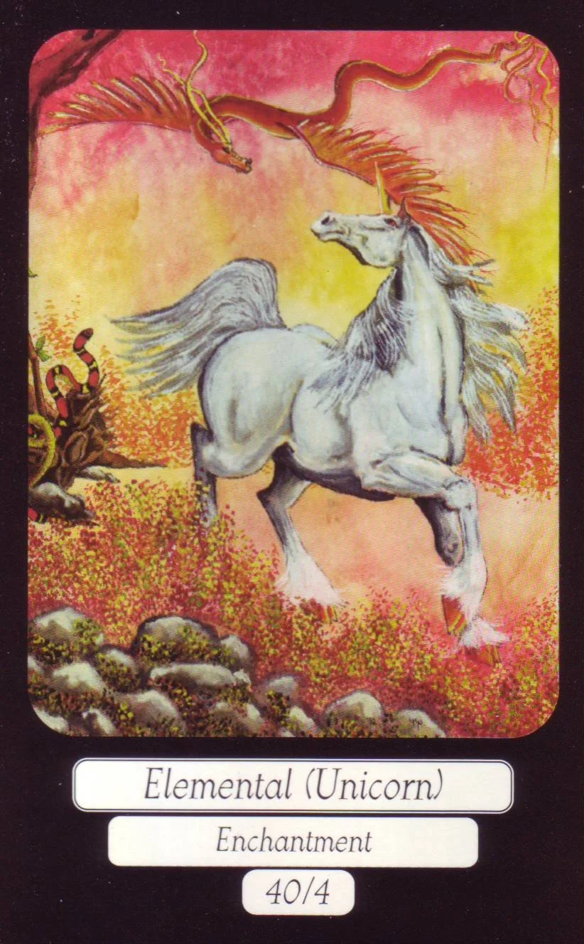 Another adaptation Louisa makes is with the Court cards and the Aces. The Kings of each suit are tagged with the element name of the suit - King of Fire, King of Earth, King of Air, King of Water. The Knights become Warriors, and the Pages become Elementals. Meanwhile, each Ace is the Dragon of the suit element - Air Dragon, Fire Dragon, Water Dragon and Earth Dragon - all changes that reflect the Faerie and elemental basis of the deck.